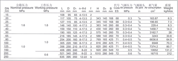 壓力等級:PN(MPa) 0.6 1.0 1.6