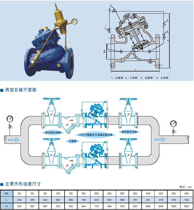YX741X隔膜可調式減壓穩壓閥前要安裝過濾器,并應便于排污的要求。