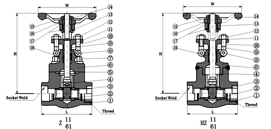 Z61H/Y、Z11H/Y型鍛鋼內(nèi)螺紋、承插焊閘閥 標(biāo)準(zhǔn)材質(zhì)細(xì)表
