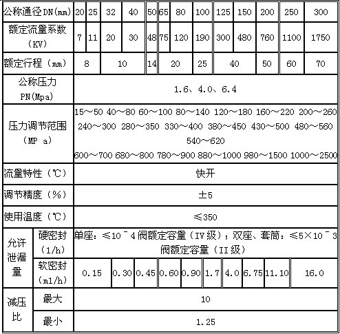 本系列產品有單座(ZZYP)、套筒(ZZYM)、雙(ZZYN)、三種結構;執行機構有薄膜式、活塞式二種;作用型式有減壓用閥后壓力調節(B型)和泄壓用閥前壓力調節(K型)。產品公稱壓力等級有PN16、40、64;閥體口徑范圍DN20~300;泄漏量等級有II級、IV級和VI級三檔;流量特性為快開;壓力分段調節從15~2500Kpa。可按需要組合滿足用戶工況要求。