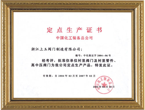 中國化工裝備總公司定點生產證書