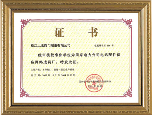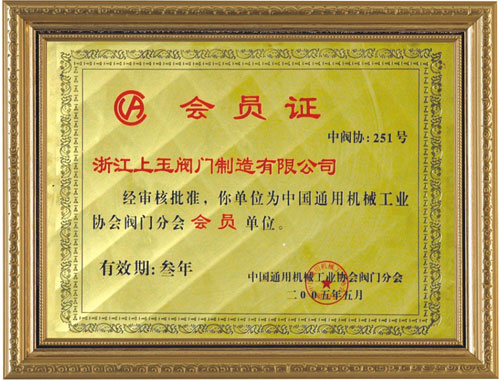 中國閥門協會會員證